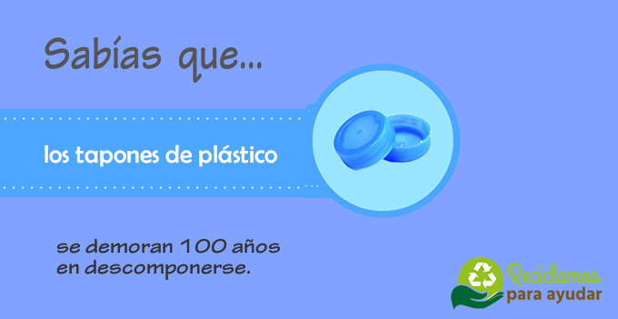Sabías que …de los tapones de plástico. Los tapones de plástico tardan 100 años en degradarse y desaparecer del planeta tierra. Lo cuál sugiere que los tapones de plásticos son altamente contaminante para nuestro planeta.